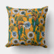Bee-eaters, blue butterflies and daisies on orange throw pillow