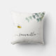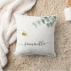 A chic white background. Decorated with watercolored eucalyptus greenery, foliage and a cute, happy smiling bee. Personalize and add your monogram letter, initial and name. The name is written with a modern hand lettered style script with swashes. The name in black and the monogram letter in yellow.
