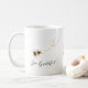 This coffee mug is decorated with watercolor honey bees and "Bee Grateful" in stylish script typography.
