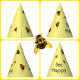 These photographic cute fat and furry bumblebees add more fun to these whimsical yellow party hats The bees are actual photographic images beefitting any "Bee Happy" Birthday party theme. Check out the whole Bee Party theme collection for picnics, birthday parties and more. They are customizable in an unlimited choice of background colors and all text can be personalized with Names and sentiments. Have fun, Bee creative and Bee Happy!