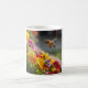 A beautiful photo realistic Honey Bee floating above colorful flowers. Brighten you day, all day long.