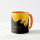 Bee Happy cute yellow bees dripping honey black Mug