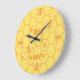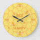 Bee Happy honeybees on yellow honeycomb Large Clock