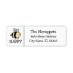 Cute yellow and black bee over the word HAPPY in black text. To the right are templates to add your own details.