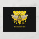 Honey bee with open wings icon over bee hive and honey drops. Custom background color. Custom text. Seamless pattern background at back side.