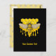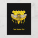 Honey bee with open wings icon over bee hive and honey drops. Custom background color. Custom text. Seamless pattern background at back side.