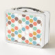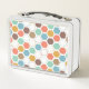 This is a standard metal lunchbox that appears to work just fine. We designed this box ourselves with an uploaded photo and custom text on the front and back. It looks absolutely beautiful except the front of the lunchbox is not centered like it shows in the photo. The print borders don't align with the inset flat part of the box where the preview photo online showed it perfectly centered in there. The back looks nice and centered though.
