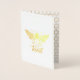 This card features an ornate bee on the front with the work "kind" written below in a script font. There is a border along the outside edge. The front of the card is gold foil on a bright white background. Inside is a gold honeycomb pattern with a white box for you to personalize with a message.