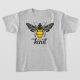 This t-shirt design features an ornate bee on the front with the work "kind" written below in a script font. The bee design is black and yellow on a bright white background.