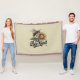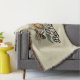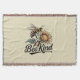 Bee Kind Throw Blanket. Features an antique illustration of an adorable bee with a copper water canister and a large sunflower.