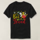 This black t-shirt features a cute cartoon bee with large eyes and a friendly smile, holding a large red heart. The words "Bee Loved" are written in a playful yellow script. The design is cheerful and heartwarming, conveying a message of love and affection.