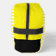 This bag starts with bright yellow and white stripes; the top and sides are bright yellow and black. In the lower left corner there’s an image of a bee.