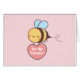 A greeting card with a cute little flying bee is holding on to a heart with the pun words "Bee My Valentine!" Perfect for Valentine's day for your crush!