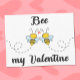 This postcard features two cute bees flying near each other, with three little red hearts between them. The caption reads "Bee my Valentine"