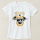 This t-shirt has a cute design with the saying "Bee Nice or Buzz Off" along with two black and gold honey bees and a black and gold sunflower.