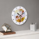 Honey bee on pink flowers of a Japanese cherry tree - sakura. The beauty of the spring season. Soft pink and yellow colors. Round wall clock to decorate your home of office. A good gift for any occasion.