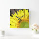 Bee On Sunflower Close Up Photograph Square Wall Clock