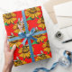 Bee on Sunflower Flower Pattern Design Red Wrapping Paper