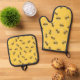 Bee Pattern Yellow Oven Mitt & Pot Holder Set