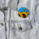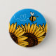 a cute bee flies over a row of sunflowers and leaves a heart-shaped trail on this fun and colorful button