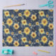 Bee w Sunflower Floral Rustic Navy Wood Decoupage Decoupage Tissue Paper in heavy weight excellent for painted furniture decoration, crafting or gift wrapping use. This version has as watercolor painted navy blue wood background with larger and smaller sunflowers that are scattered along with eucalyptus leaf foliage and dried fern greenery. Audrey Jeanne Roberts, an internationally licensed artist and designer, created this in a loose, painterly style. Copyright, all rights reserved.