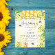 A stylish white and golden watercolored background. Decorated with bumble bees, melting honey and honeycomb with yellow florals, flowers and a honey jar. With the text: The Wedding of written with a modern hand lettered style script. Personalize and add your names.