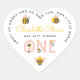 Bee Yellow & Pink Floral ONE Baby's 1st Birthday Heart Sticker