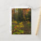 This postcard will take you on a walk through a forest of beech trees on a sunny autumn day. The path is so inviting! The beeches are one of the last trees in the woods to change into their fall foliage colors. In this photo, some are still green, some have turned to yellow, and some are already the deep reddish brown they will eventually become. In winter, after all the other trees have dropped their leaves, the beech trees will be holding on to their dry brown leaves which rattle in the wind.