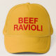 BEEF RAVIOLI fun and bold slogan on trucker hat, red, ironic, typography, funny statement, inspired by tv character frank rossitano. beefy ravioli. dat pasta. original.