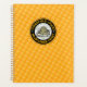 Professional Beekeepers Planner to record details about your bees and hives during the season, with our classic "Beehive Apiary Name Wildflower" honey jar label printed directly on the cover. Vintage skep type beehive with honey bees flying at the center of a round icon, over a golden honeycomb background. Customized round text with the name of the beekeeper or apiary, contact information, product type, with the planner title and year below the hive. © dotpattern