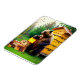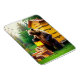 This magnet features a grizzly Bear stealing honey from a beehive.