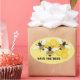 A graphic illustration of a honeybee and honeycomb by artist/designer Charmaine Paulson on a "Save the Bees" sticker.