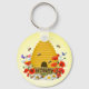 Order this fabulous beekeeping themed key ring for anyone who loves bees and honey! Beekeepers Beehive meadow with honeycomb background.
