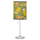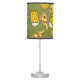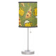 The lamp looks exactly like the picture, bright and colorful. The lamp shade is plastic not what I expected, however I love it! The printing is clear and the name can easily be read.