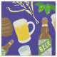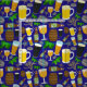 Beer Glass Bottle Hops and Barley Pattern Blue Fabric