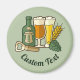 Beer illustration. Bottle, glass, opener, hops and barley. Custom background color. Custom text.