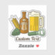 Beer illustration. Bottle, glass, opener, hops and barley. Custom text.