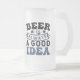 Celebrate your love for beer with this "Beer Is Always a Good Idea" Frosted Beer Mug. Perfect for any beer enthusiast, this frosted mug features a fun and engaging design that’s ideal for any occasion. Crafted from high-quality materials, it ensures durability and keeps your beer cold longer. Whether for personal use or as a thoughtful gift, this mug adds a touch of humor and style to your beer-drinking experience.