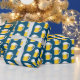 Fun gift wrap featuring a pattern of jugs of beer, on a blue background.