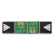 Regulation size beer pong table with black background. The design is in the style of a bar sign illumination with emerald green led neon wire lights, which read BEER BEER BEER with illuminated beer bottles. The beer pong table has a color palette of black green red and amber. At each end of the table there is a circle pyramid to use as a cup placement guide. Great design for your bar or man cave and a great drinking party game for a housewarming, boys night out or house party.