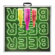 Regulation size beer pong table with black background. The design is in the style of a bar sign illumination with green led neon wire lights, which read BEER BEER BEER with illuminated beer bottles. The beer pong table has a color palette of black, green, yellow, pink and red. At each end of the table there is a circle pyramid to use as a cup placement guide. Great design for your bar or man cave and a great drinking party game for a housewarming, boys night out or house party.
