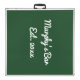 Create your own personalized regulation size beer pong table. The design is in the style of a bar sign illumination on a dark green background color. It has led neon wire light signage, which reads BEER BEER BEER with illuminated beer bottles. The template is set up for you to add your custom text, such as your name or bar name and date established. Your custom text is printed in white, casual lettering. The beer pong table has a design at each end of the table, to face each team, in a color palette of dark green, lime green, red and amber yellow. Great design for your Irish bar or man cave and a great drinking party game for St Patricks Day, housewarming, boys night out or house party.
