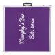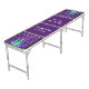Create your own personalized regulation size beer pong table. The design is in the style of a bar sign illumination on a purple background color (editable). It has led neon wire light signage, which reads BEER BEER BEER with illuminated beer bottles. The template is set up for you to add your custom text, such as your name or bar name and date established. Your custom text is printed in white, casual lettering. The beer pong table has a design at each end of the table, to face each team, in shades of of purple with a splash of white, green and blue. Great design for your Irish bar or man cave and a great drinking party game for St Patricks Day, housewarming, boys night out or house party.