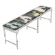 Not that I've had experience to buy that many beer pong or ping pong tables in my life, but I know a good quality product when I see it! This beer pong table is sturdy and solid and still lightweight enough to be portable. It folds and unfolds smoothly for easy storage or setup. From order to arrival here, the time was half of what was estimated, and that was during the holiday season. And -- most importantly -- the recipient LOVED it! I would definitely purchase this product again or other products by the maker Hampton Technologies , should an occasion to do so arise. The printing is beautiful! The blues and reds are deep and rich and the white "chalk look" is clean and crisp,. The photo (taken in low light) doesn't really do it justice. We know it's printed, but take a step back, and it really does look like chalk on a blackboard. To get the blue background like we did (instead of the traditional green chalkboard background), use background color #26306A. :)