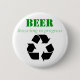 White button with green funny beer saying "Beer recycling in progress"