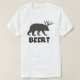 The shirt is good quality and fits just fine, but the colors of the printing are not as bright as in the sample photo. Not the best. The colors are a lot brighter in the sample photo; when I received the shirt they appeared faded. The red looks a little more pink and the blue is a lot lighter. N.B. I did not wash the shirt yet.