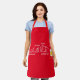 Great color and even though I ordered the kid size, it covers well enough to use during the holidays. I am not a big woman and prefer a shorter apron. I stand 5"6" and the length of the garment goes to mid-thigh. The tie straps fit well at my waist and even though there is no neck strap adjustment, the opening is plenty big enough. I am happy with the size and fit. I am sharing my apron with my 10 year old grandson, too! The color is vibrant and looks good, as shown on the website. The stitching looks strong and reinforced. Photographed is front side and back side of the apron, reinforced straps and coloring. My phone camera may not be the best at showing the details.