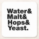 Beer = Water & Malt & Hops & Yeast. Square Paper Coaster