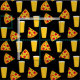 Black fabric patterned with pints of beer and slices of pepperoni pizza