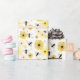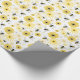 Wrapping paper featuring a pattern of bees and flowers with a yellow and black color scheme.